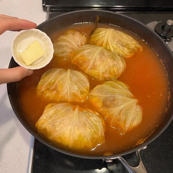 In Japan, rolled cabbage Japanese style is most commonly simmered in a tomato-based sauce, giving the dish a sweet and tangy flavor. However, there are many variations depending on the region and season.