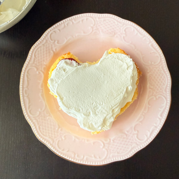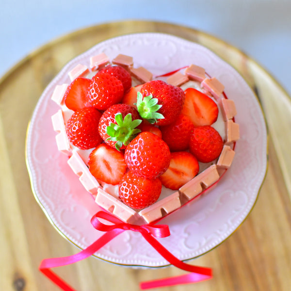 Since this cake includes heavy cream and fresh strawberries, it is best kept refrigerated and enjoyed within a day or two. If you plan to serve or gift it for Valentine’s Day, preparing the cake on the day or the day before ensures the best freshness and flavor.