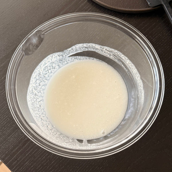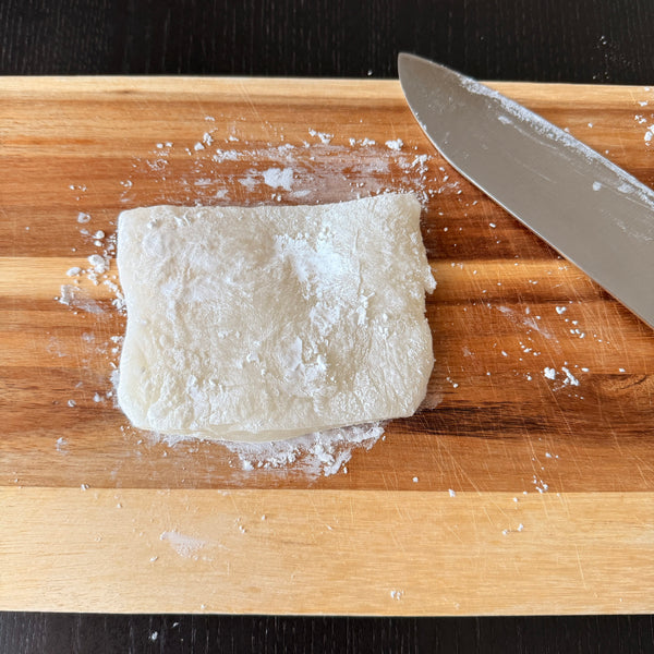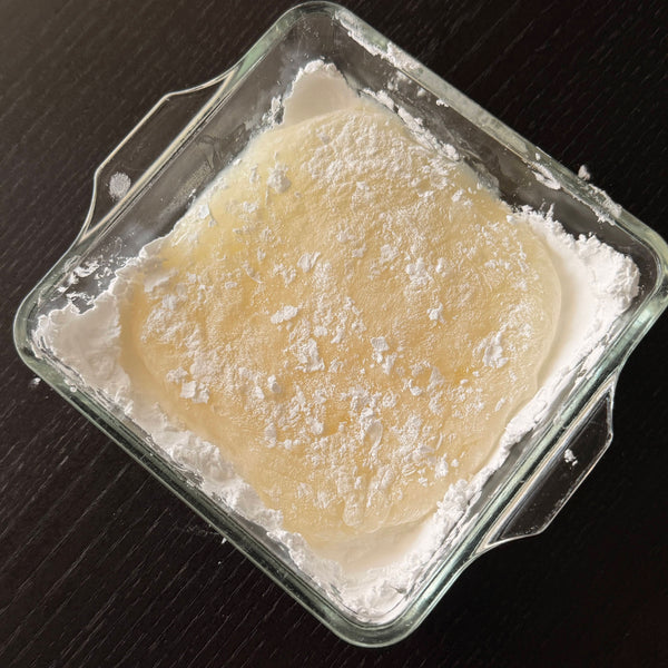 Wakaayu consists of two layers: a pancake-like outer layer and soft mochi (gyuhi) inside. Some versions also include sweet azuki bean paste. Gyuhi is made from mochi-ko or shiratama-ko (glutinous rice flour), which is essential in many wagashi, including daifuku and nerikiri. For simplicity, this recipe uses shiratama-ko and a microwave method.