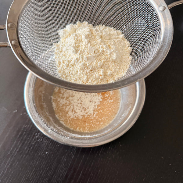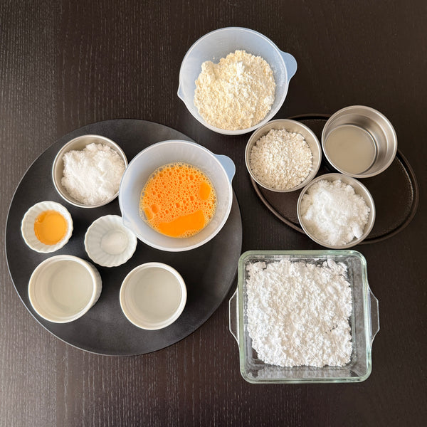 Jusou (baking soda) is used as a traditional Japanese leavening agent. It makes the dough expand more sideways, adds a slightly yellow color, and can taste bitter if overused. Baking powder can be substituted in double the amount.