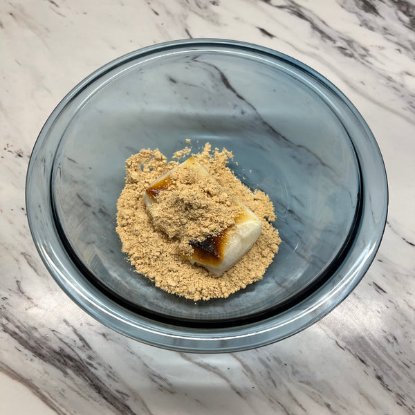 Kinako & Sugar: For those with a sweet tooth, the grilled mochi is rolled in a generous coating of roasted soybean powder mixed with sugar. This adds a nutty, almost peanut-butter-like flavor that melts into the warm rice cake.