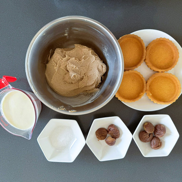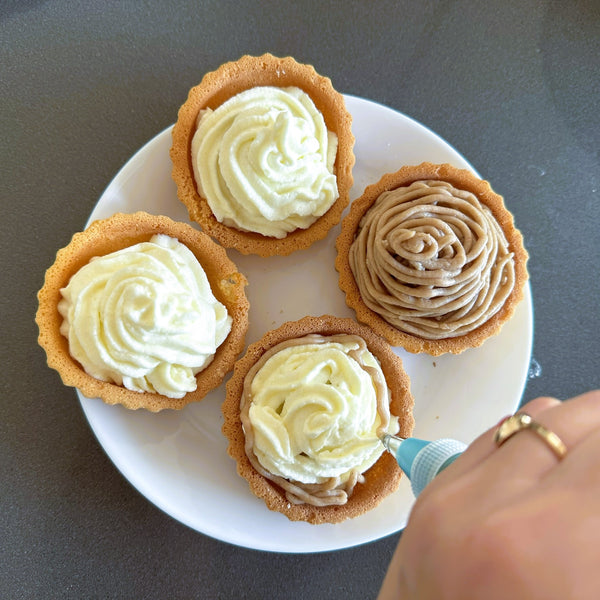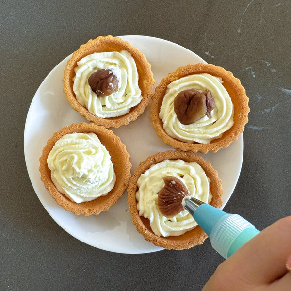 Though a special piping tip is typically used to create the chestnut cream’s signature strands, you can substitute it with a simple round tip or even an improvised piping bag.