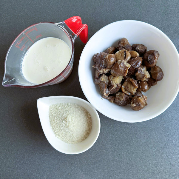 Mont Blanc cake’s main ingredients are chestnut cream, often flavored with rum or vanilla, and a base of sponge cake or meringue. While the traditional preparation can be labor-intensive, requiring the baking of the base and preparation of chestnuts, this simplified recipe uses store-bought sponge cake and pre-cooked chestnuts to make it more accessible.
