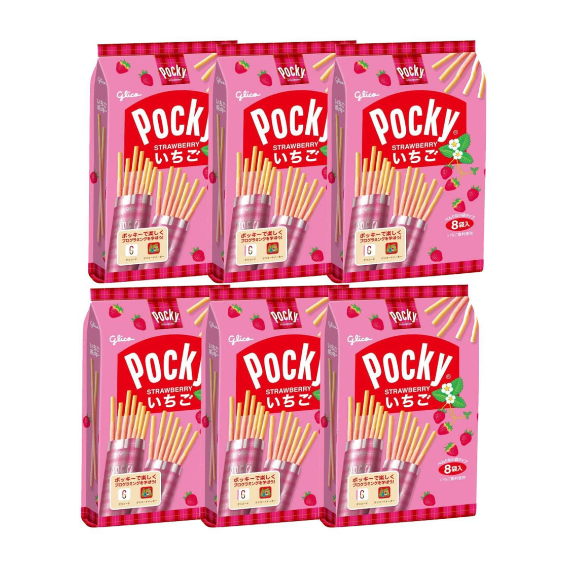 A value pack with 6 bags full of pocky sticks. 8 individual packets inside each bag to keep each stick fresh and crunchy.