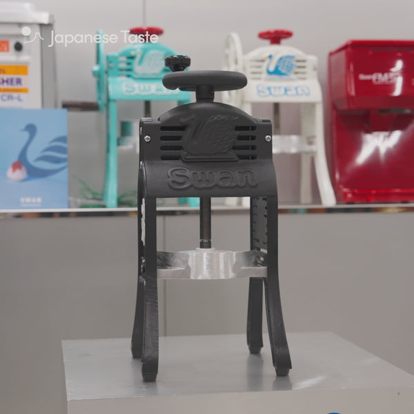 Experience a traditional Japanese treat with this great shaved ice machine. Its vintage black cast-iron body with Ikenaga’s iconic Swan logo will stand out among the rest of your kitchen appliances. Its unique design ensures the same level of quality as Ikenaga’s commercial machines, but it has been made significantly lighter for home-use.