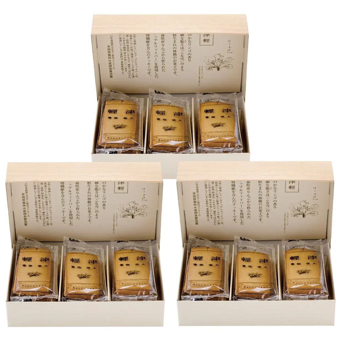 These delicious cookies come in a box inspired by the cover design of Dazai Osamu's "Tsugaru", a famous Japanese novel from the 1940s.