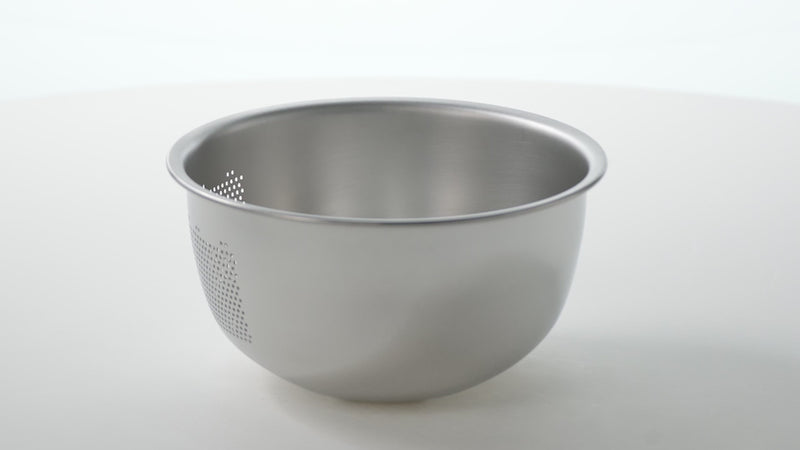 Crafted from premium 18-8 stainless steel, this bowl isn't just a kitchen essential; it's a durable and professional-grade tool ready to withstand a demanding kitchen. The straining holes, punched into the steel, guarantee longevity and easy cleaning, making it a reliable choice for both home cooks and culinary professionals alike.