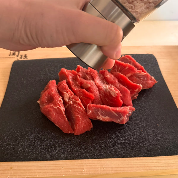 Seasoning: Simple salt, pepper, or sansho enhances the steak without overpowering it.