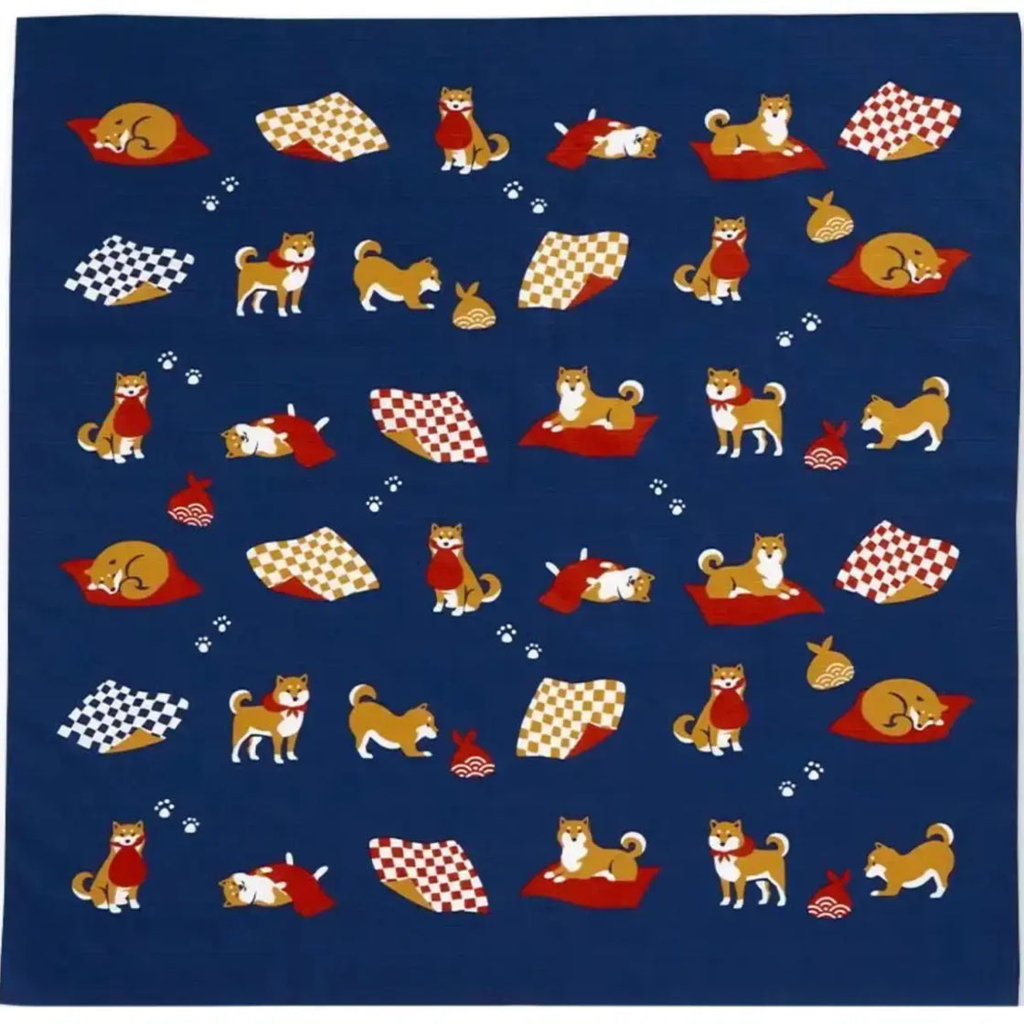 Furoshiki Shiba Inu Medium Blue Cotton Wrapping Cloth 70cm