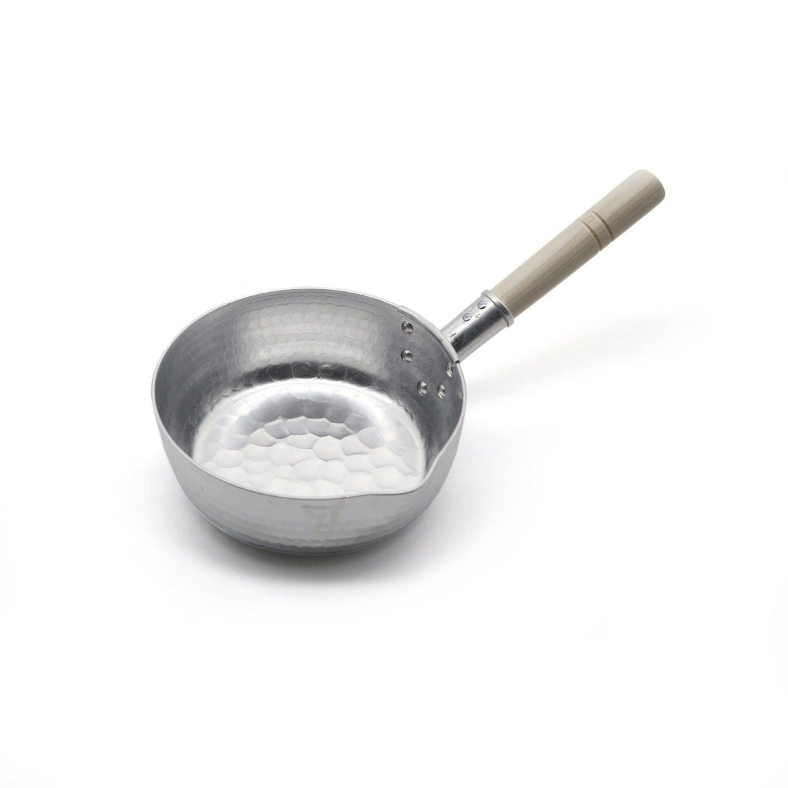 This handcrafted Yukihira pot by Kiya is a lightweight yet durable kitchen essential, made from thick aluminum for excellent heat efficiency. Carefully hammered by artisans, it’s ideal for everyday cooking tasks like simmering, boiling, and frying.